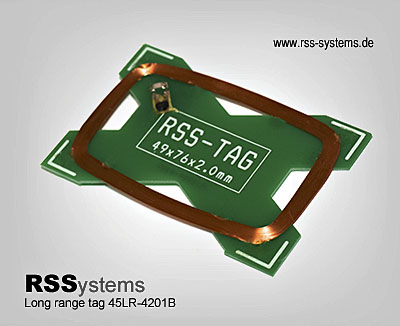 45LR-4201B Sonder Transponder mit Ultra low power Chip EM4102 kompatibel und Ultra-Strong-Field 70x45x1mm Antenne. Diese Transponder für hohe Ansprüche in Industrial Enviroment was Leseabstand anbetrifft.(90...100cm mit der DXURL100-232 Reader) Durch die kleinen Maße eignet sich für Sonderidentifikationen aller Art in MR, LR, ULR Bereich. Passt zu allen RSSystems Readern, 125KHz, ASK